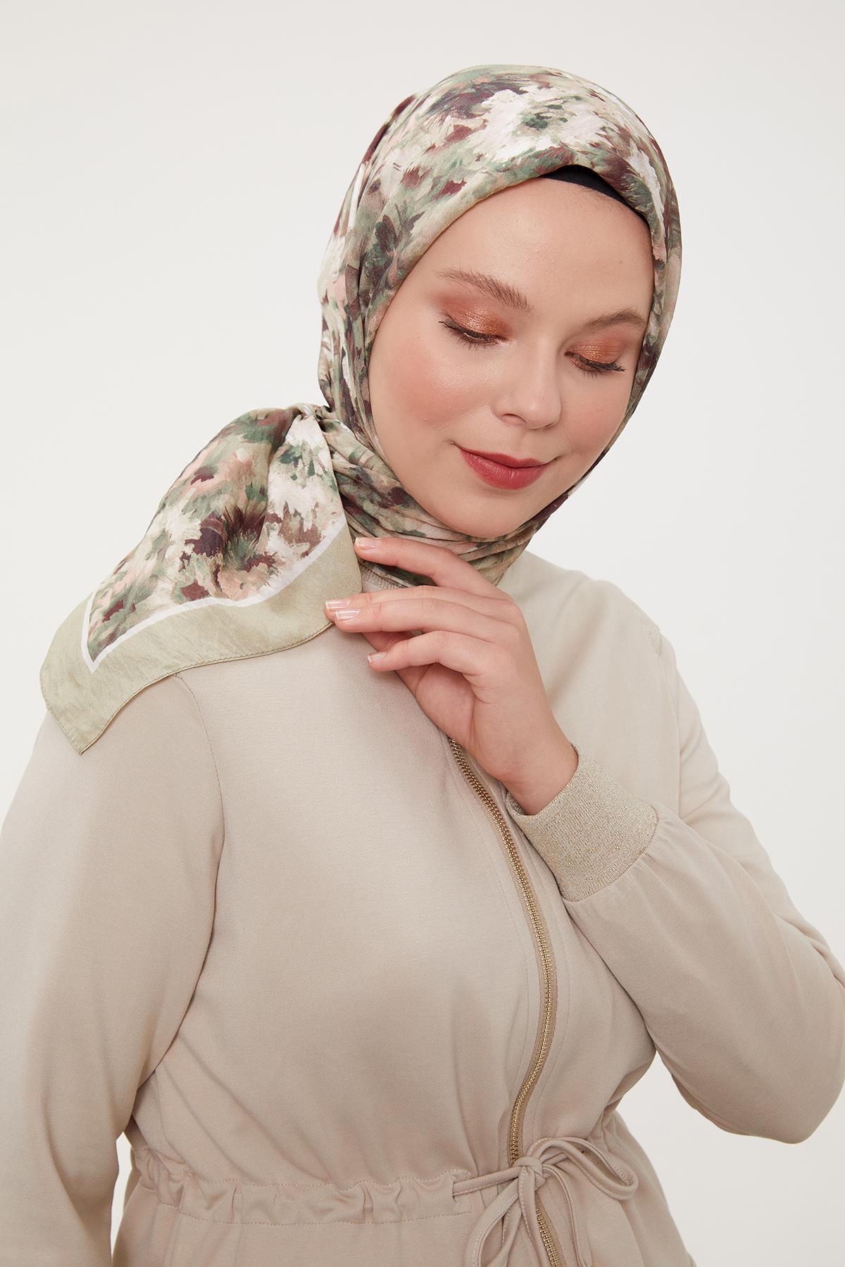 LevidorLevidor Yağ Yeşili Ebruli Desen Modal İpek Eşarp