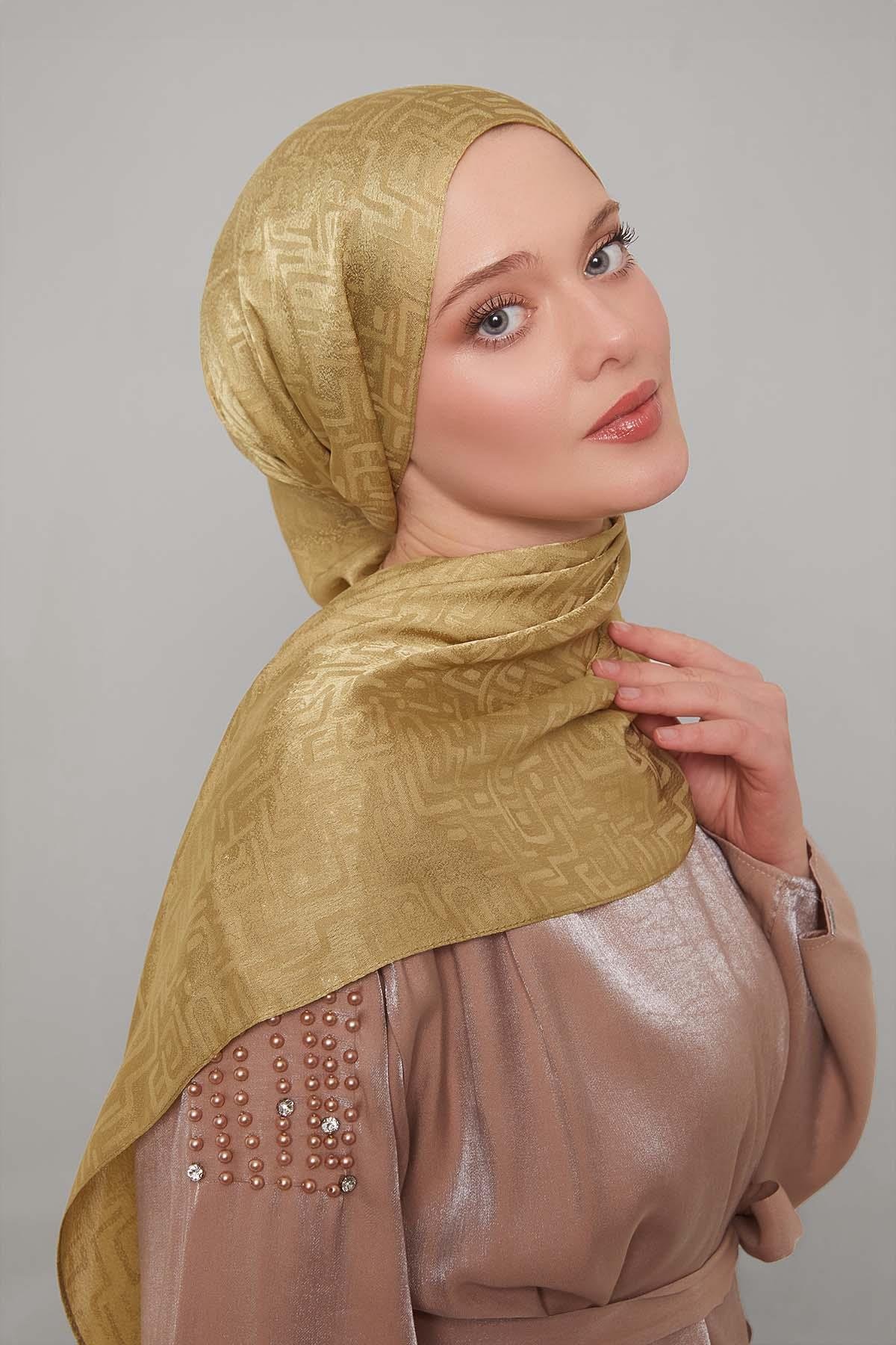 Yağ Yeşili Kiril Desen Jakarlı Janjan Şal (LVD.JAN.0008)