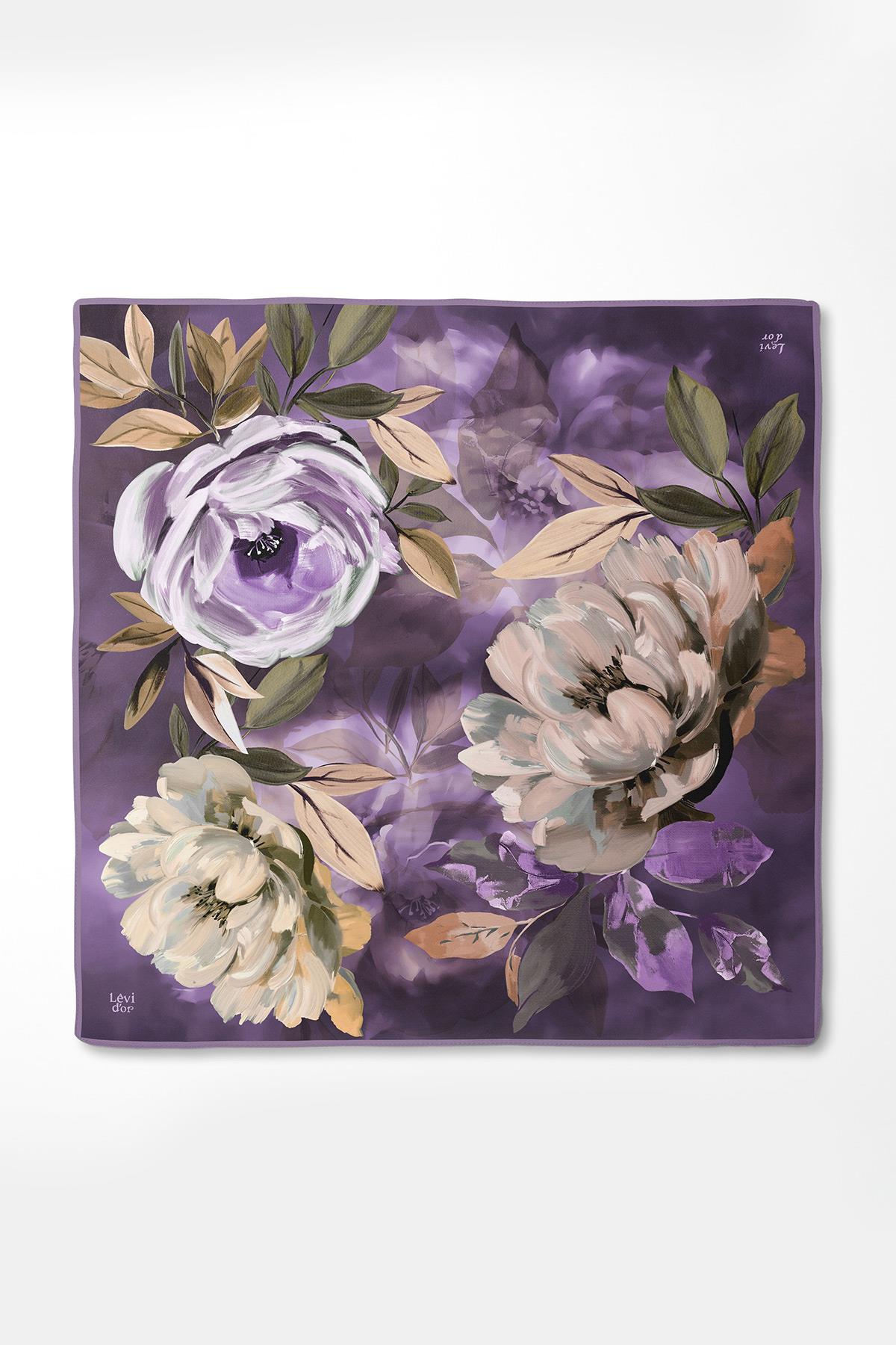 LevidorLila Çiçek Desenli Twill İpek Eşarp