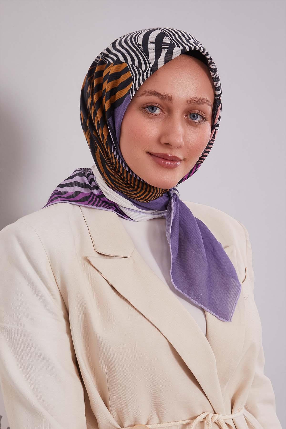 Lila Hologram Desen Pamuk Eşarp (LVD.PME.0043)
