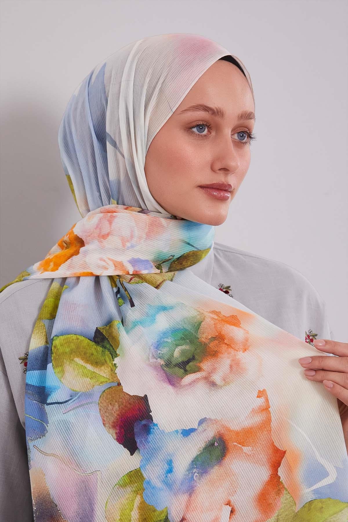 Şıklığınıza dinamizm katan eşsiz ebruli desen pamuk şal çiçek desenlerini özel pamuk dokusu ile bir araya getiriyor. Yumuşak dokusuyla kombinlerinize hem günlük hem de özel bir şıklık katıyor. Başörtüsü olarak kullanılabileceğiniz gibi omuz örtüsü veya çanta aksesuarı olarak da stilinize yaratıcı bir dokunuş katabilirsiniz. Hafif yapısı sayesinde pratik bir kullanım sunarken dayanıklı dokusu uzun süreli kullanım imkânı veriyor. Pilise etek takımlarınızın üzerinde kullandığınızda gün boyu rahatlık sunarken kombinlerinize sofistike bir görünüm sunuyor.