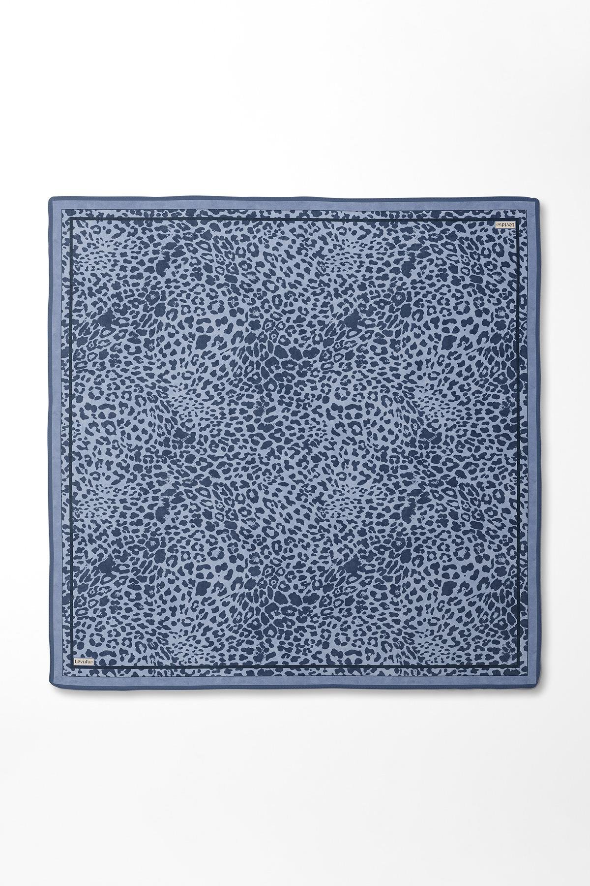 LevidorMavi Leopar Desen Twill İpek Eşarp