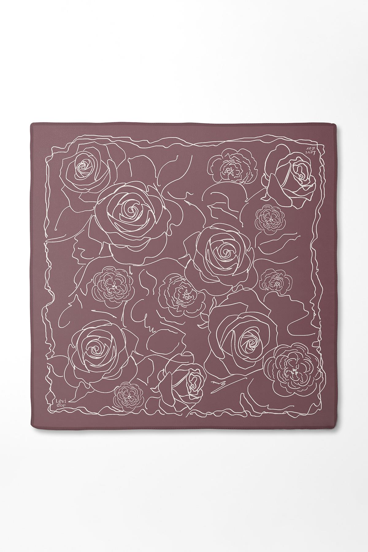 Menekşe Gül Desen Twill İpek Eşarp (LVD.IPE.0917)