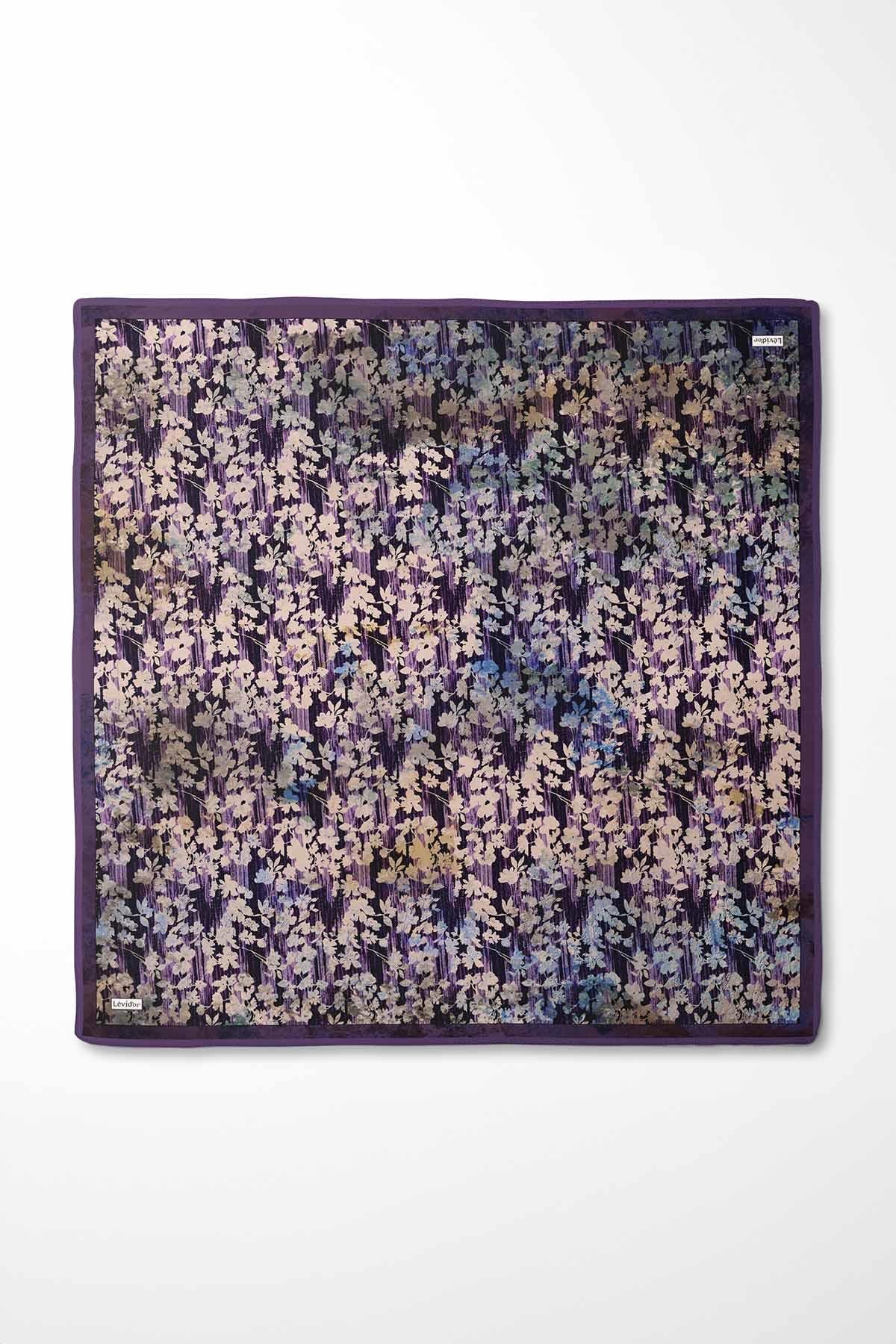 Mor Çiçekli Soyut Desen Twill İpek Eşarp (LVD.IPE.0932)