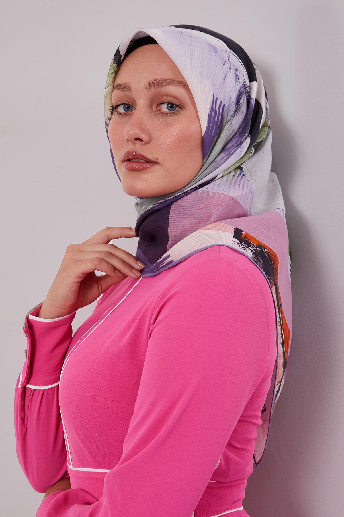 Mor Karışık Desen Pamuk Eşarp (LVD.PME.0035)