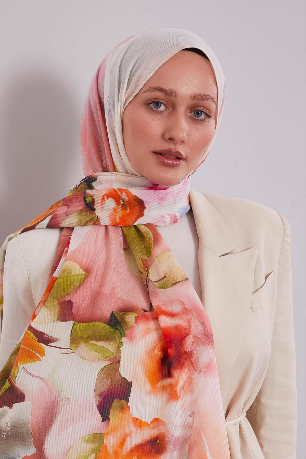 Şıklığınıza dinamizm katan eşsiz ebruli desen pamuk şal çiçek desenlerini özel pamuk dokusu ile bir araya getiriyor. Yumuşak dokusuyla kombinlerinize hem günlük hem de özel bir şıklık katıyor. Başörtüsü olarak kullanılabileceğiniz gibi omuz örtüsü veya çanta aksesuarı olarak da stilinize yaratıcı bir dokunuş katabilirsiniz. Hafif yapısı sayesinde pratik bir kullanım sunarken dayanıklı dokusu uzun süreli kullanım imkânı veriyor. Pilise etek takımlarınızın üzerinde kullandığınızda gün boyu rahatlık sunarken kombinlerinize sofistike bir görünüm sunuyor.
