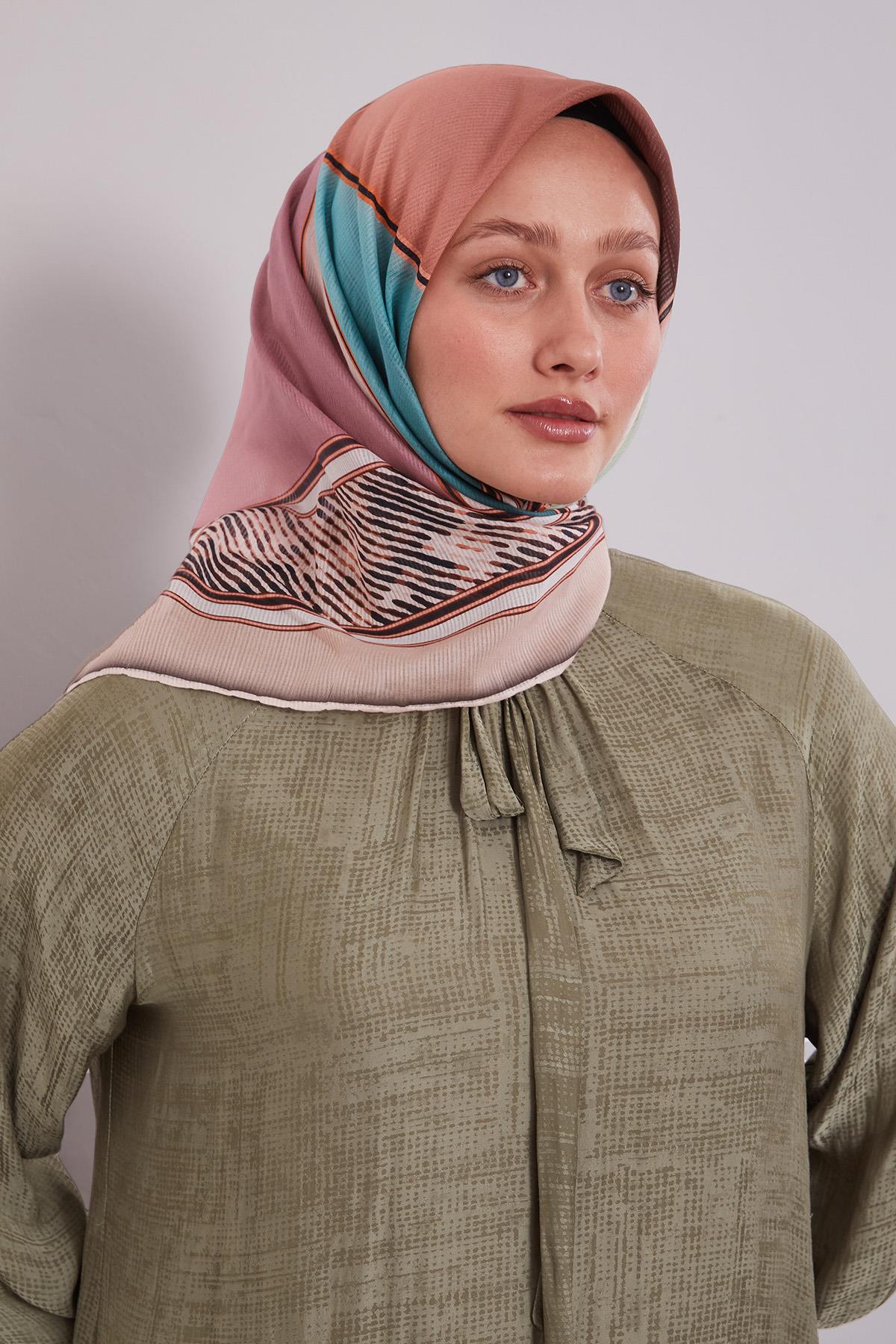 Şıklığınıza dinamizm katan eşsiz karışık geometrik desen pamuk eşarpgeometrik desenlerini özel pamuk dokusu ile bir araya getiriyor. Üstelik günlük etkinliklerden özel davetlere kadar geniş bir kullanım alanına sahiptir. Bu özel desenler modern bir hava yaratarak farklı stillere de uyum sağlıyor. Nefes alan kumaşıyla kayma yapmadan gün boyu şekli bozulmadan formunu koruyan yeni eşarp modelimiz beğeninize sunuluyor. Tesettür tunik veya kemerli trençkotlarınızın üzerine kullanarak profesyonel ve zarif bir imaj çizebilirsiniz.