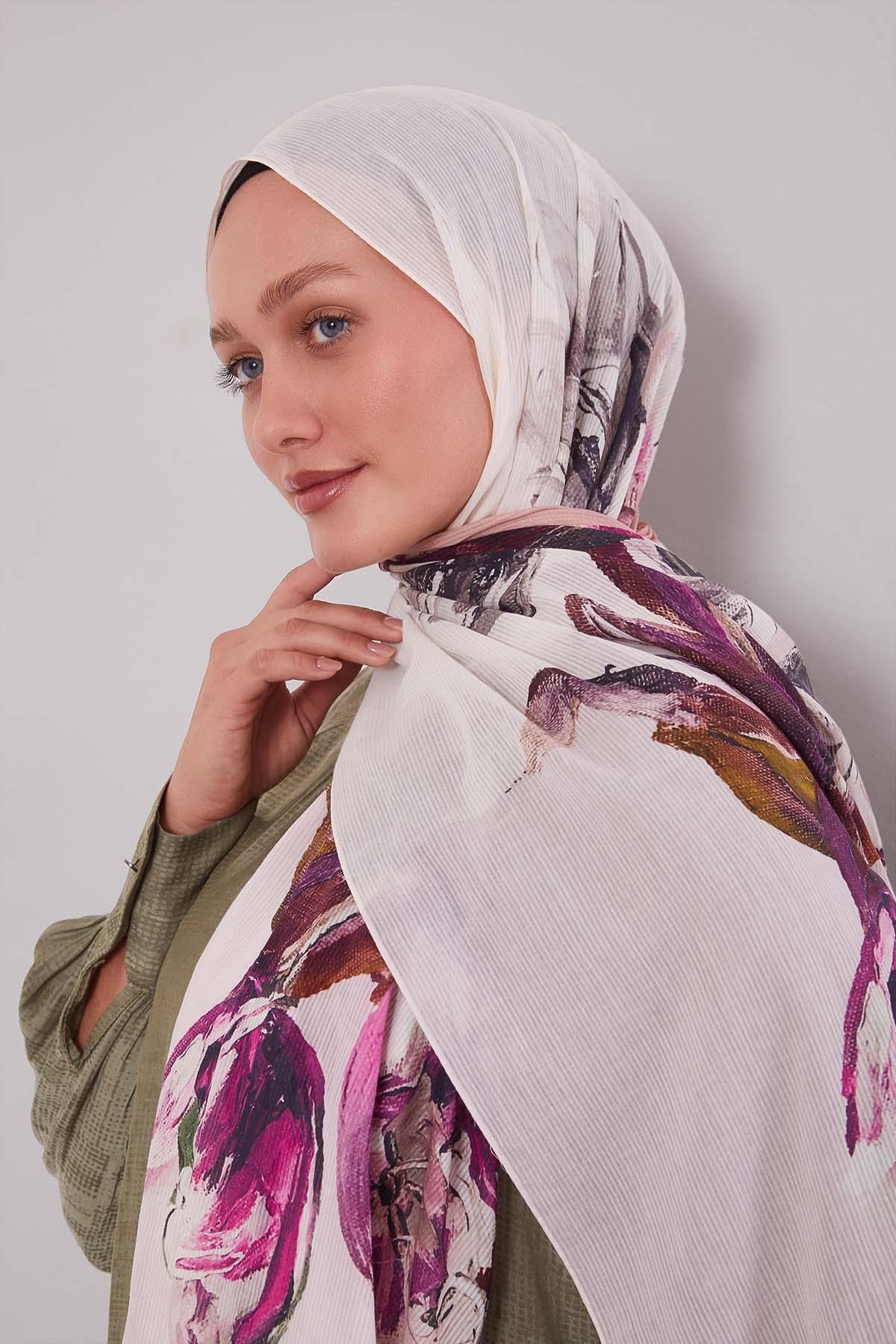 Pudra Lale Desen Pamuk Şal (LVD.PMK.0201)