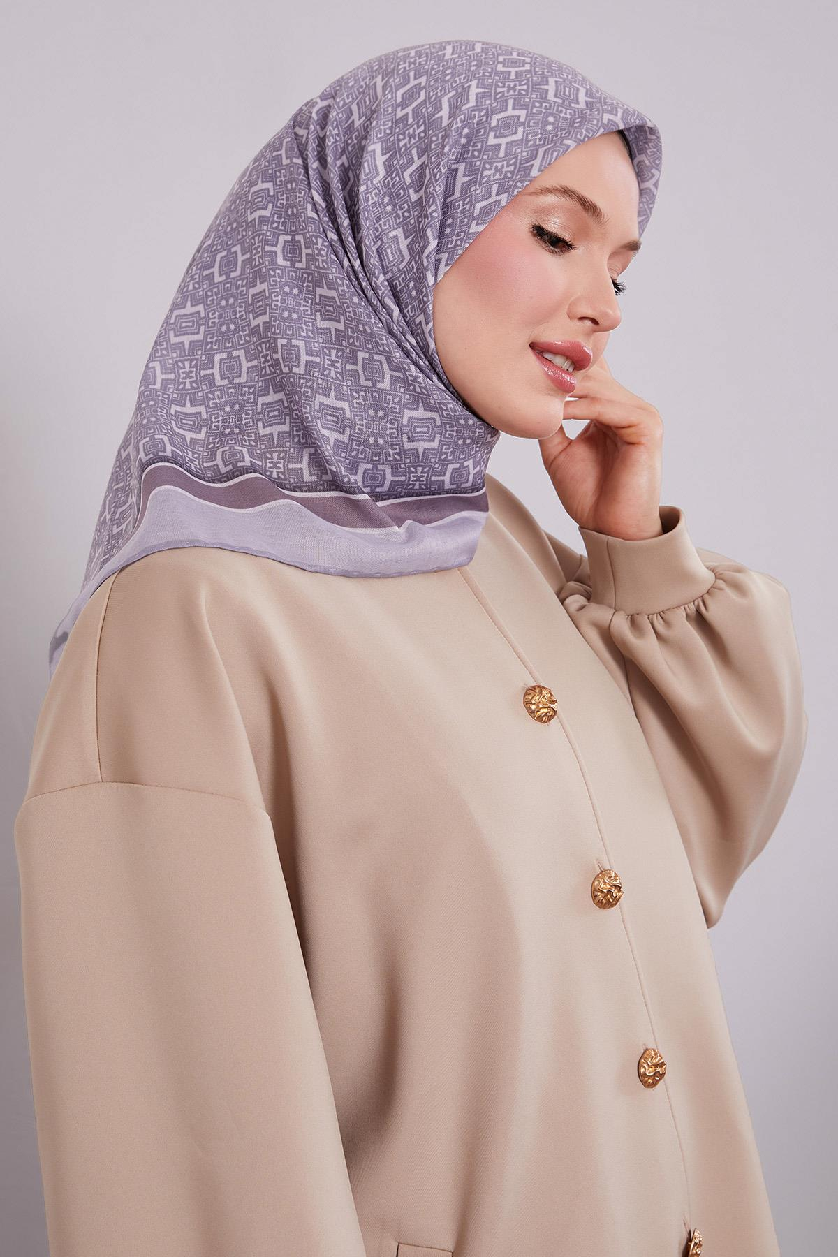Menekşe Puzzle Desen Soft Eşarp sade şıklığı modern bir yorumla buluşturuyor. Zigzag desen detayıyla klasik şal tasarımına sofistike bir hava katan bu model farklı renk seçenekleri ile her zevke hitap ediyor. Yumuşak dokusu ve zarif parlaklığı kombinlerinize hem günlük hem de özel bir şıklık katıyor. Başörtüsü olarak kullanılabileceğiniz gibi omuz örtüsü veya çanta aksesuarı olarak da stilinize yaratıcı bir dokunuş katabilirsiniz. Tunik ikili takımlarınızın üzerine kullandığınızda gün boyu rahatlık sunarken kombinlerinize sofistike bir görünüm sunuyor.