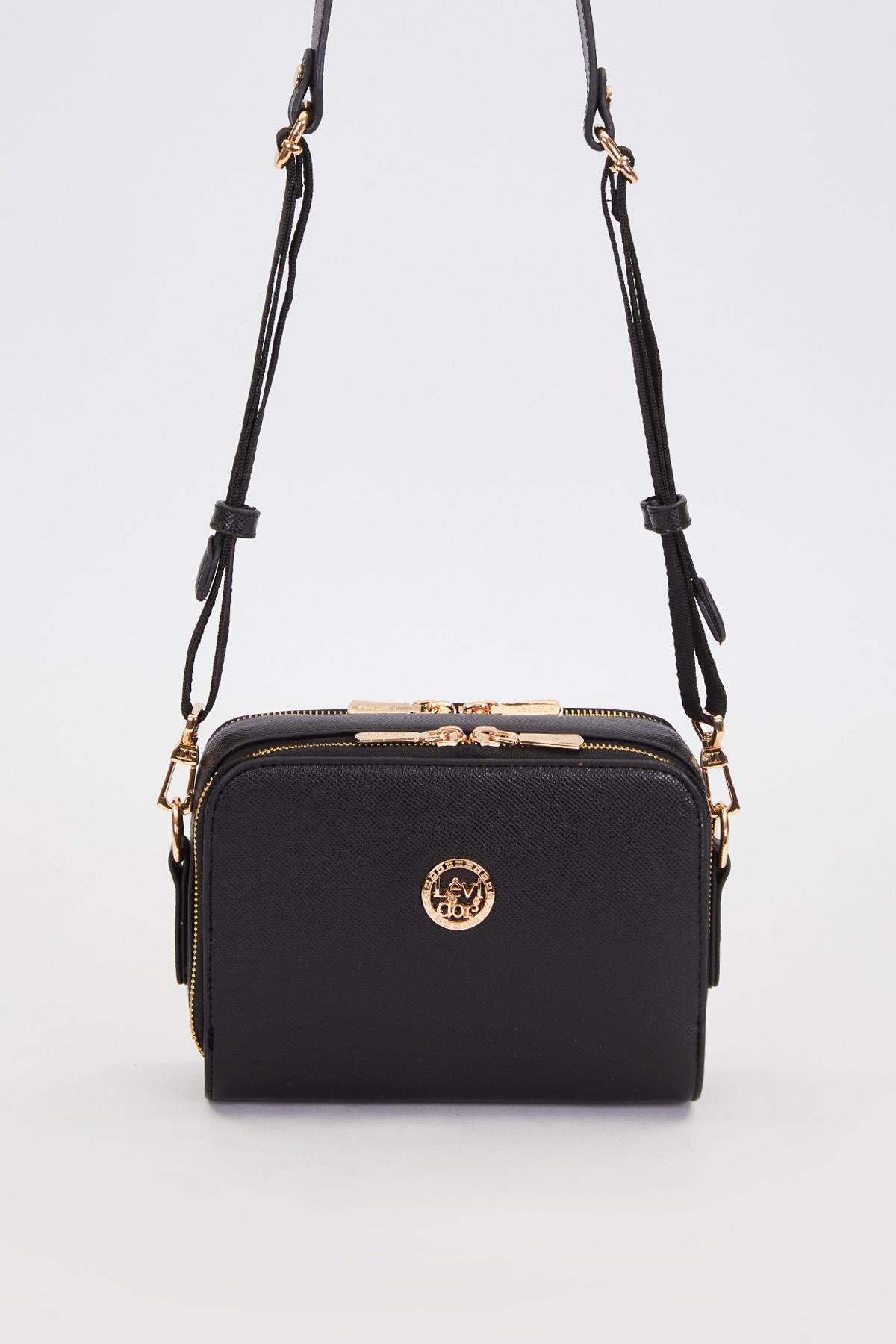 LevidorSiyah Çift Fermuarlı Ayarlanabilir Omuz Çantası