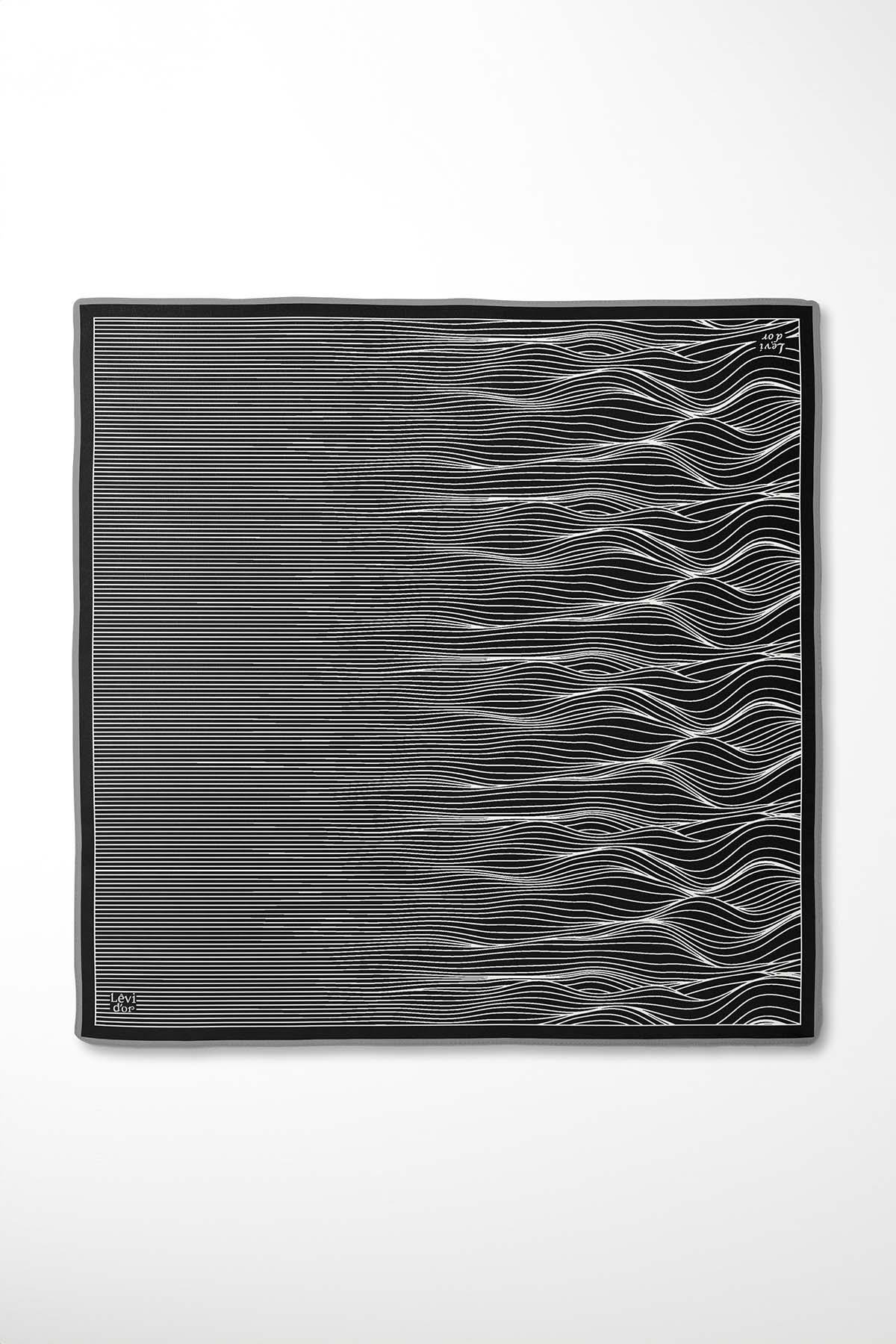 LevidorSiyah Çizgi Desen Twill İpek Eşarp