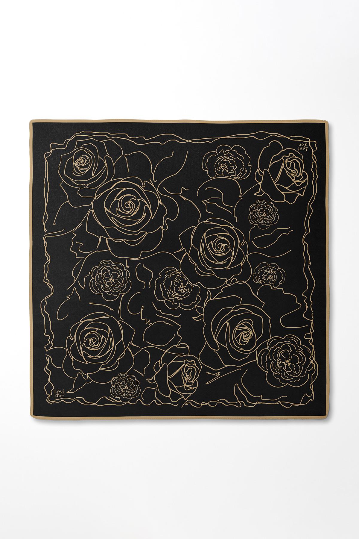 LevidorSiyah-Gold Gül Desen Twill İpek Eşarp