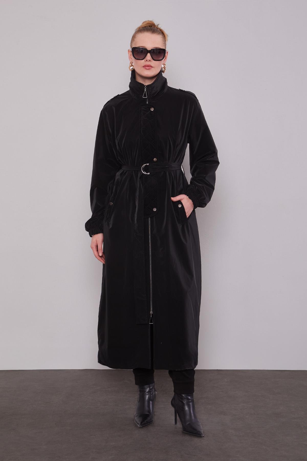 Camel Kapitone Detaylı Trençkot Taş Kapitone Detaylı Trençkot Siyah Kapitone Detaylı Trençkot