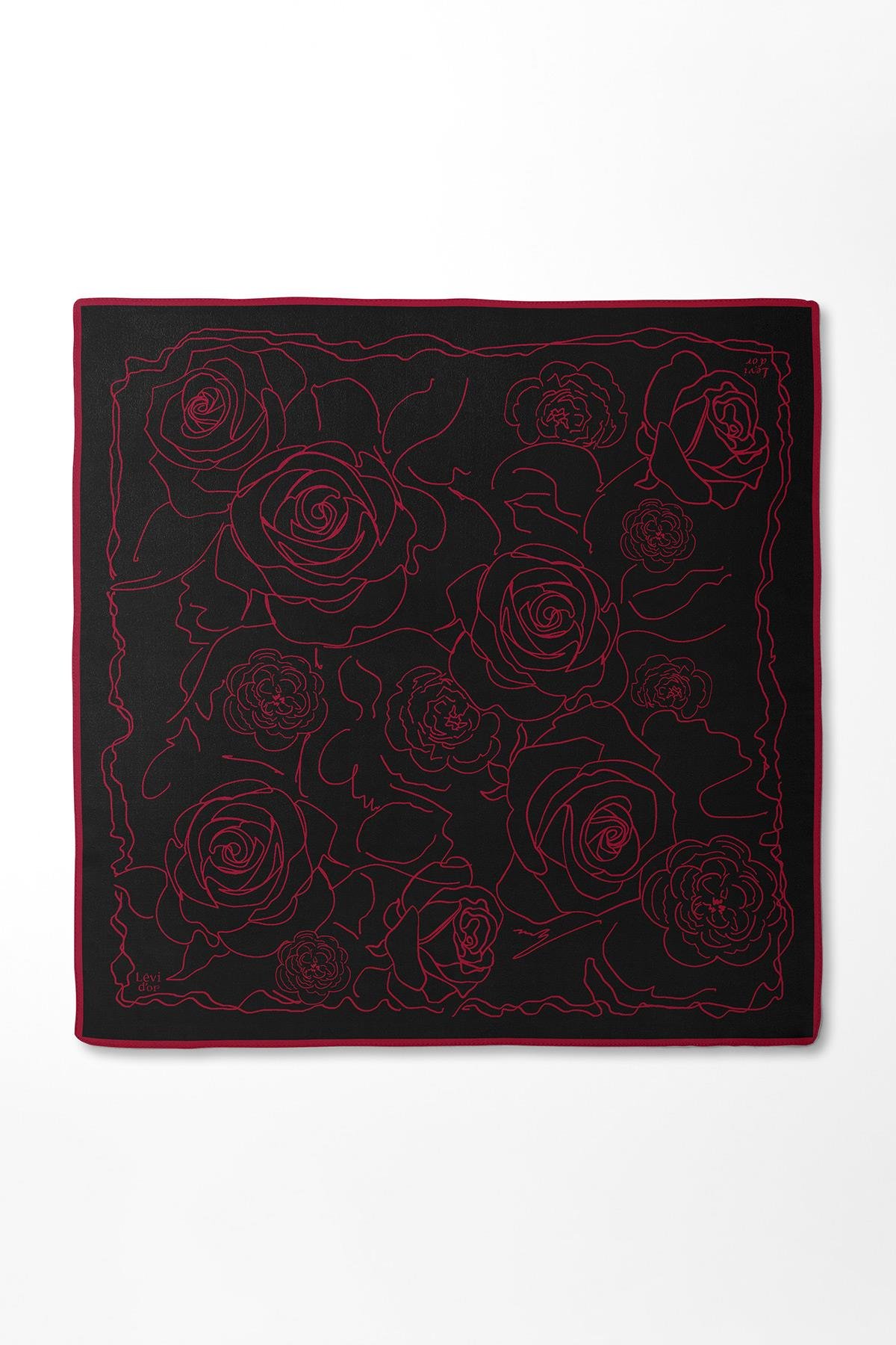 LevidorSiyah-Kırmızı Gül Desen Twill İpek Eşarp