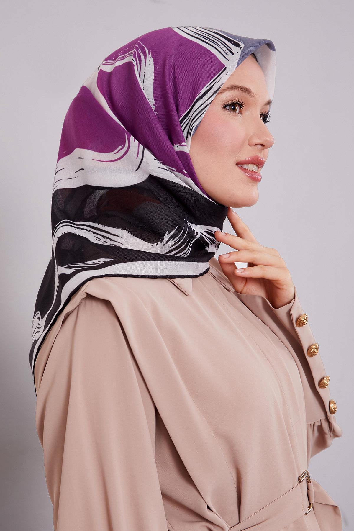 Soyut desen soft eşarp son yıllarda stil sahibi tesettürlü bayanların tercihleri arasındadır. Rahat kullanımı ve dökümlü kumaşıyla dikkat çeken günlük kombinlerden özel gün stiline kadar geniş bir kullanım alanı sunuyor. Başörtüsü olarak kullanılabileceğiniz gibi omuz örtüsü veya çanta aksesuarı olarak da stilinize yaratıcı bir dokunuş katabilirsiniz. Şıklığı konforla bir araya getiren bu özel tasarımı koleksiyonunuza ekleyerek kombinlerinize bambaşka bir hava katabilirsiniz Bayan pantolon takımlarınızın üzerine kullandığınızda gün boyu rahatlık sunarken kombinlerinize sofistike bir görünüm sunuyor.