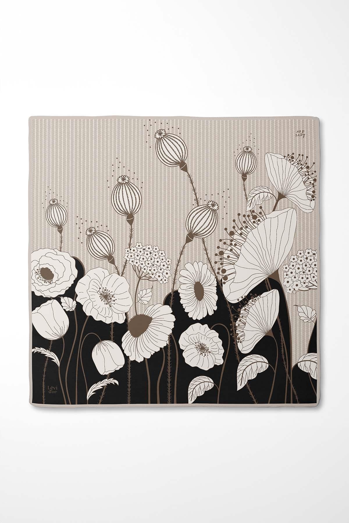 LevidorSiyah-Vizon Çiçekli Twill İpek Eşarp