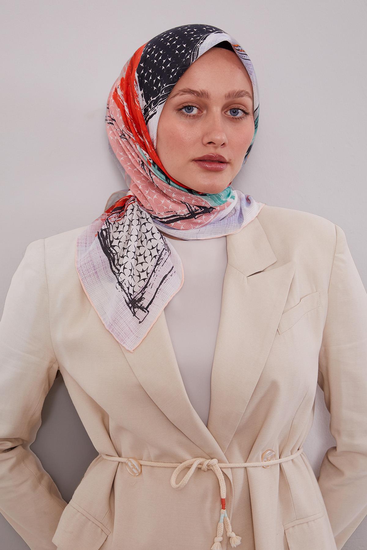 Sanatsal bir estetik sunan kombinlerinizin baştacı etnik desen pamuk eşarp modern ve klasik çizgileri birleştiren özel tasarımıyla stilinizi tamamlıyor. Pamuk kumaştan üretilen bu eşarp yumuşak dokusu ve dökümlü yapısıyla gün boyu konfor sağlıyor. Eşarbın etnik desenleri minimal ve sade kombinlerinize iddialı ve şık görünümler kazandırıyor. Zamansız ve asil bir dokunuşun simgesi olan yeni çıkan eşarp modelleri farklı renkleriyle beğeninize sunuluyor. Ten renginize uygun pastel veya sıcak tonlarda tercih ettiğinizde ortamlarda göz kamaştırmanıza olanak sağlıyor.