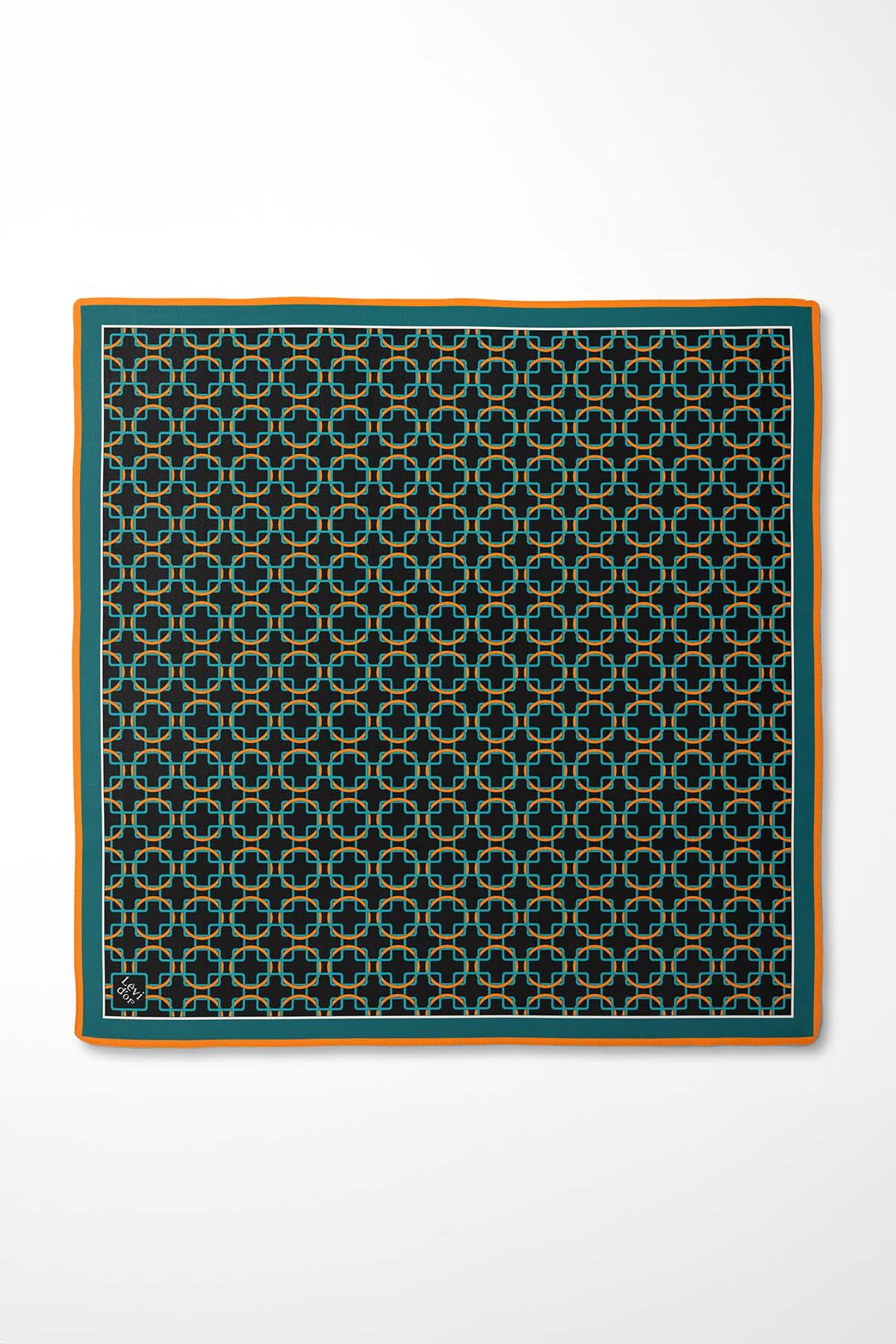 LevidorTurkuaz Desenli Twill İpek Eşarp