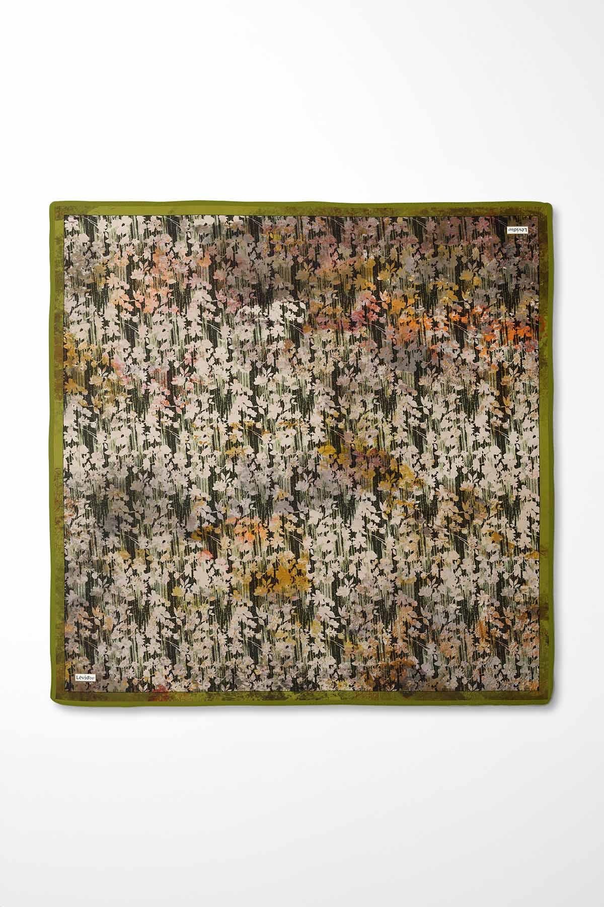 LevidorYağ Yeşili Çiçekli Twill İpek Eşarp