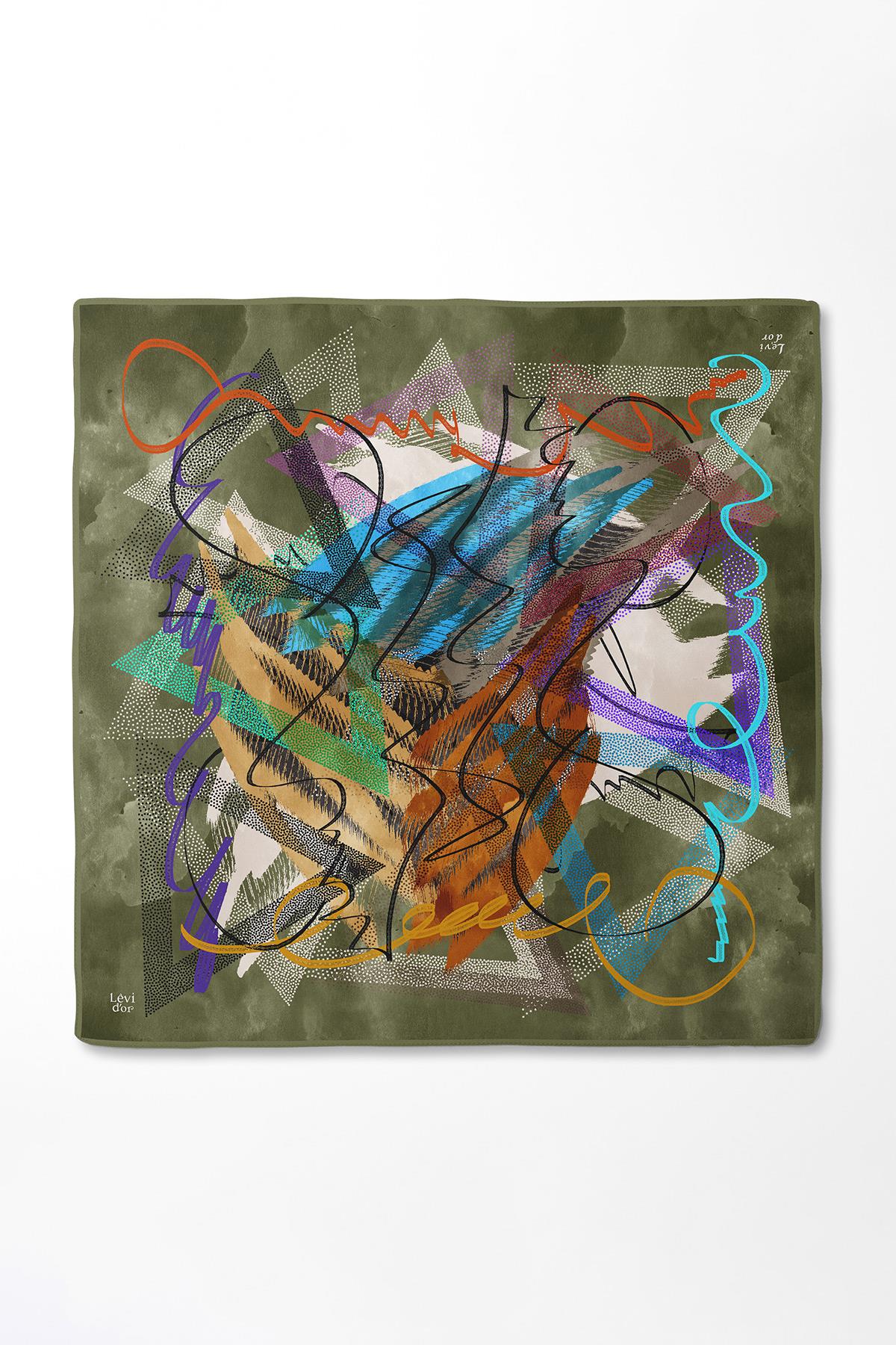 LevidorYeşil Karmaşık Desen Twill İpek Eşarp