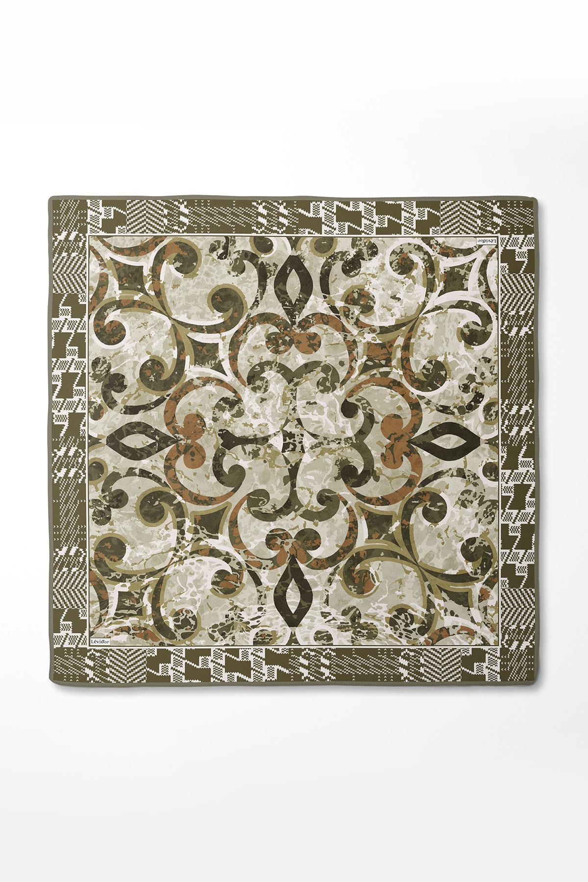 LevidorZeytin Yeşili Desenli Twill İpek Eşerp